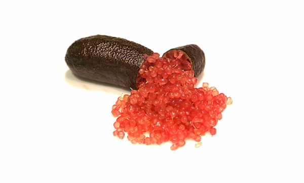 finger lime Jali Red è varietà con grande potenziale. La maggior parte dei frutti è senza semi. Il gusto è gentile, leggero, più dolce rispetto ad altre varietà di caviale rosso scuro.