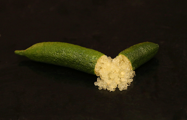 finger lime Tasty Green è una delle varietà con una pezzatura di frutti tra le più grandi. Il caviale è piccolo, limpido e acido, ma non è così acido come la varietà Green Crystal. La pianta è vigorosa e sviluppa una chioma a forma densa. Per la coltivazione commerciale avrà bisogno di molta acqua, altrimenti il frutto rimarrà significativamente più piccolo. Questa varietà fiorisce tutto l’anno e produce frutti di piccole dimensioni durante i mesi invernali.
